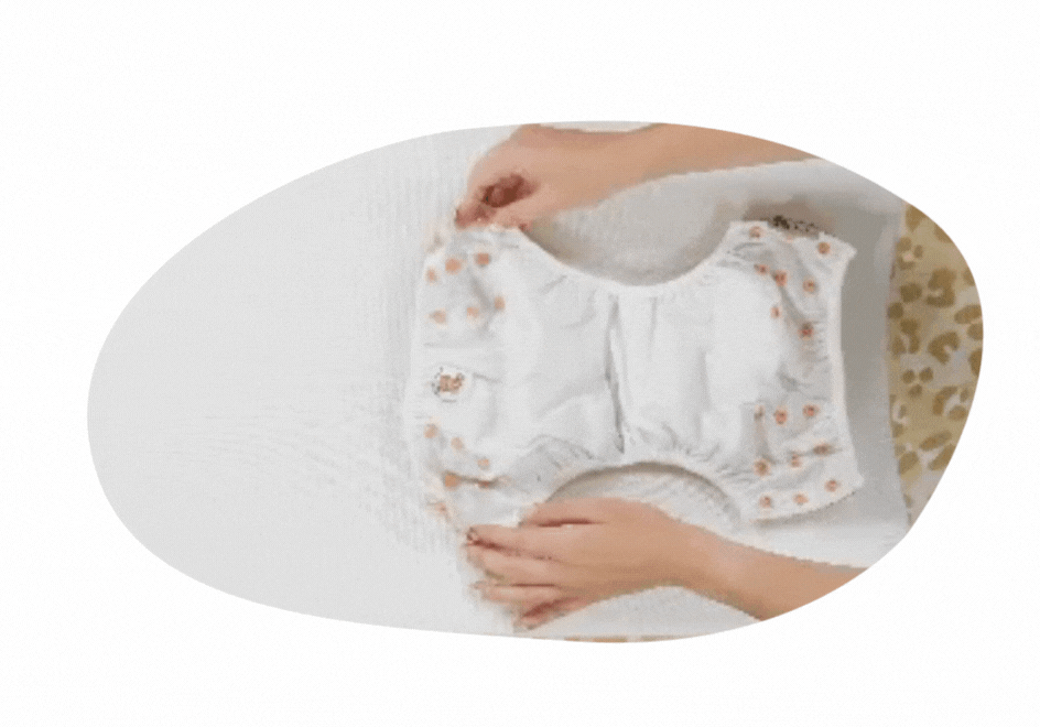 Vous pourrez facilement ajuster la taille grâce aux boutons pressions à l'avant, vous pourrez ainsi utiliser la couche de bain de 3 mois à 3 ans environ.